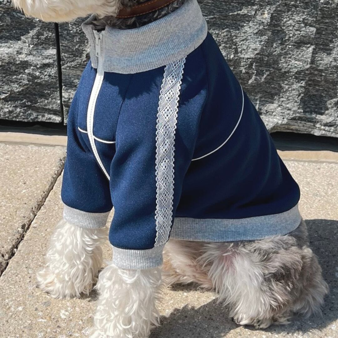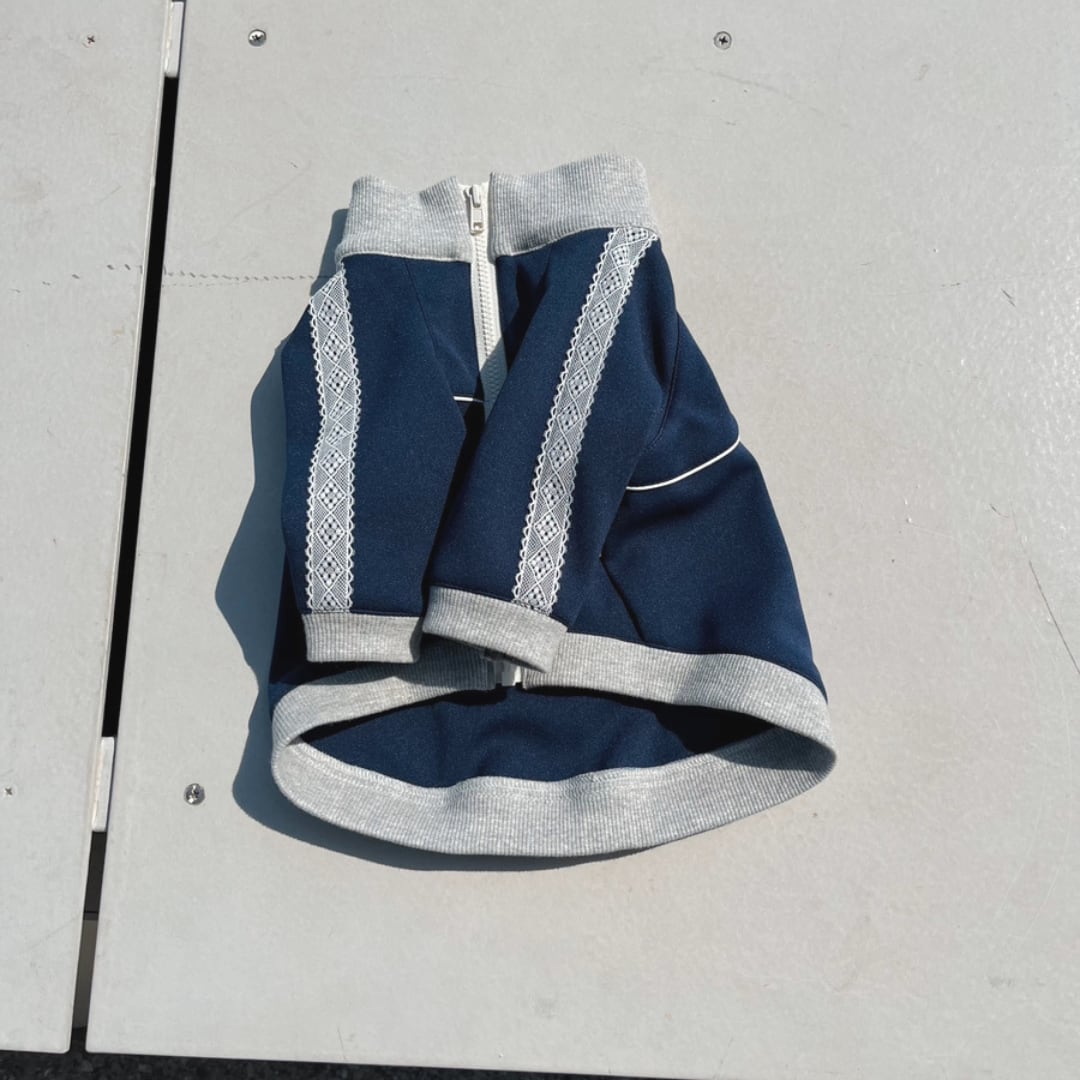 Airly Lace Jersey Be Friends AgainからJerseyシリーズの新作が登場! 空気をまとうような軽やかさと、 そっと寄り添うレースのディテール。 Airly Lace Jerseyは、 "ジャージの新しいかたち"を目指してつくった、 Be Friends Againならではのデザインジャージです。 カジュアルなジャージという枠の中に、 繊細なレースを取り入れることで、 日常の延長にある、ちょっとした上品さを表現しました。 全体のバランスを整えながら、 単調にならないようにデザインした、 一本のラインパイピングもこだわりポイント。 リブ部分は、ネイビーのボディに自然になじむ、 やや明るめのグレーを選び、 配色にも新しさを加えています。 シンプルなのに華がある。 そんな一着を目指してデザインした、 Be Friends Againの「Airly Lace Jersey」。 ぜひご愛用ください。 【送料】 12,000円以上のご購入で送料が無料となります。 【素材】 リブ部分:コットン100% ジャージ部分:ポリエステル100% 【生産】 縫製のプロが国内で一つ一つ手作りいたします。 Be Friends Againのお洋服は全てMade in Japanの高品質でお届けしております。 【納期について】 受注をいただいてからの制作となりますので、 約1~2週間ほどいただきます。 【モデル】 トルテ 犬種:ミニチュアシュナウザー 体重:9.5キロ 着用サイズ:XL 首周り:29cm 胴回り(一番太いところ):53cm 足の長さ:22cm 背丈:40cm 【お洋服のサイズ実寸】 XSサイズ 首回り:約27.5cm 着丈:約20cm 胴回り:約40cm 袖丈(脇下から袖口までの長さ):約7cm Sサイズ 首回り:約33cm 着丈:約21.5cm 胴回り:約46.5cm 袖丈(脇下から袖口までの長さ):約10.5cm Mサイズ 首回り:約38cm 着丈:約24.5cm 胴回り:約53cm 袖丈(脇下から袖口までの長さ):約12cm Lサイズ 首回り:約40cm 着丈:約29cm 胴回り:約57cm 袖丈(脇下から袖口までの長さ):約12cm XL 首回り:約42cm 着丈:約31cm 胴回り:約60cm 袖丈(脇下から袖口までの長さ):約12.5cm 足の短いワンちゃんの為に、 袖丈を調整することが可能です。 袖の調整が必要な場合は袖調整オプションをつけていただき、 カート備考で何cm袖を縮めるかご指定ください。 ※一つ一つ手作りをしている為、サイズには数ミリの誤差が生じる可能性がございます。あらかじめご了承くださいませ。 ※サイズにご不安のある方はご試着サービスをご利用くださいませ。