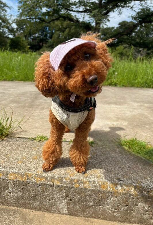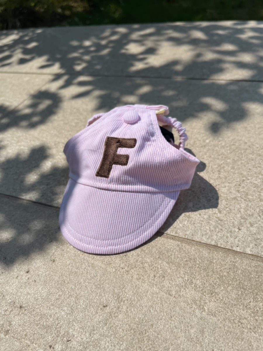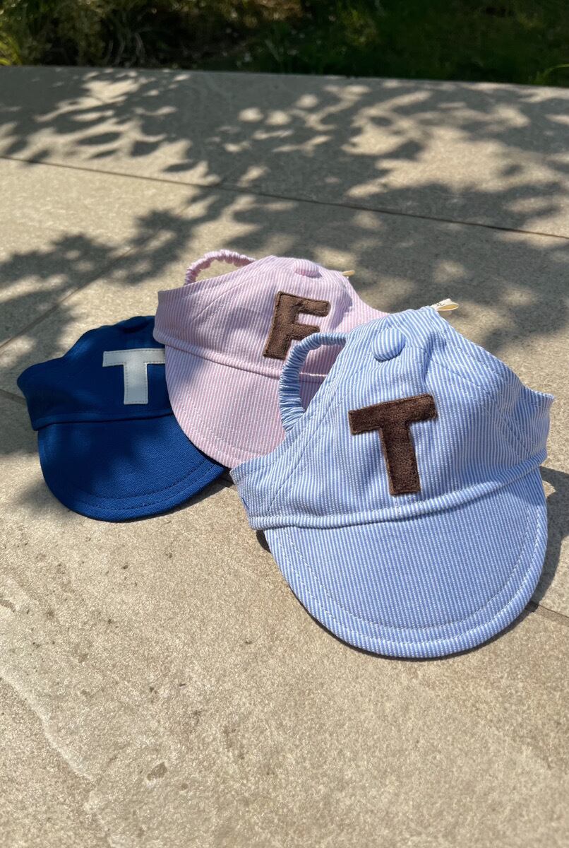 「T」や「F」など、愛犬のイニシャルを帽子につけられます。