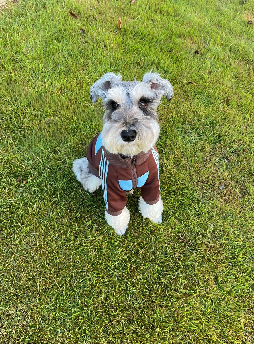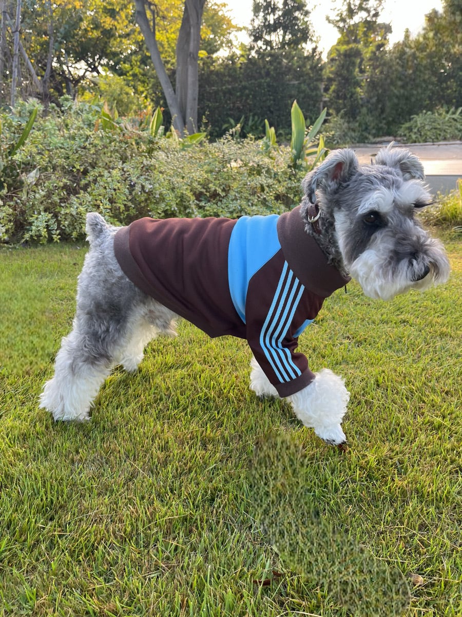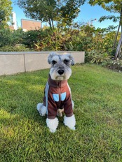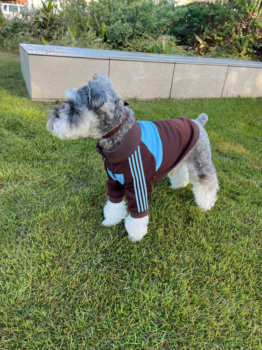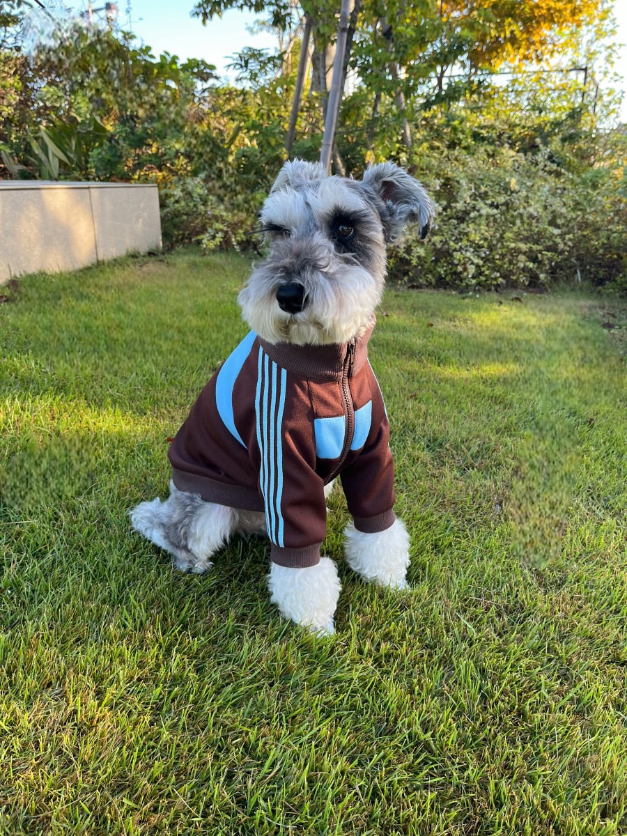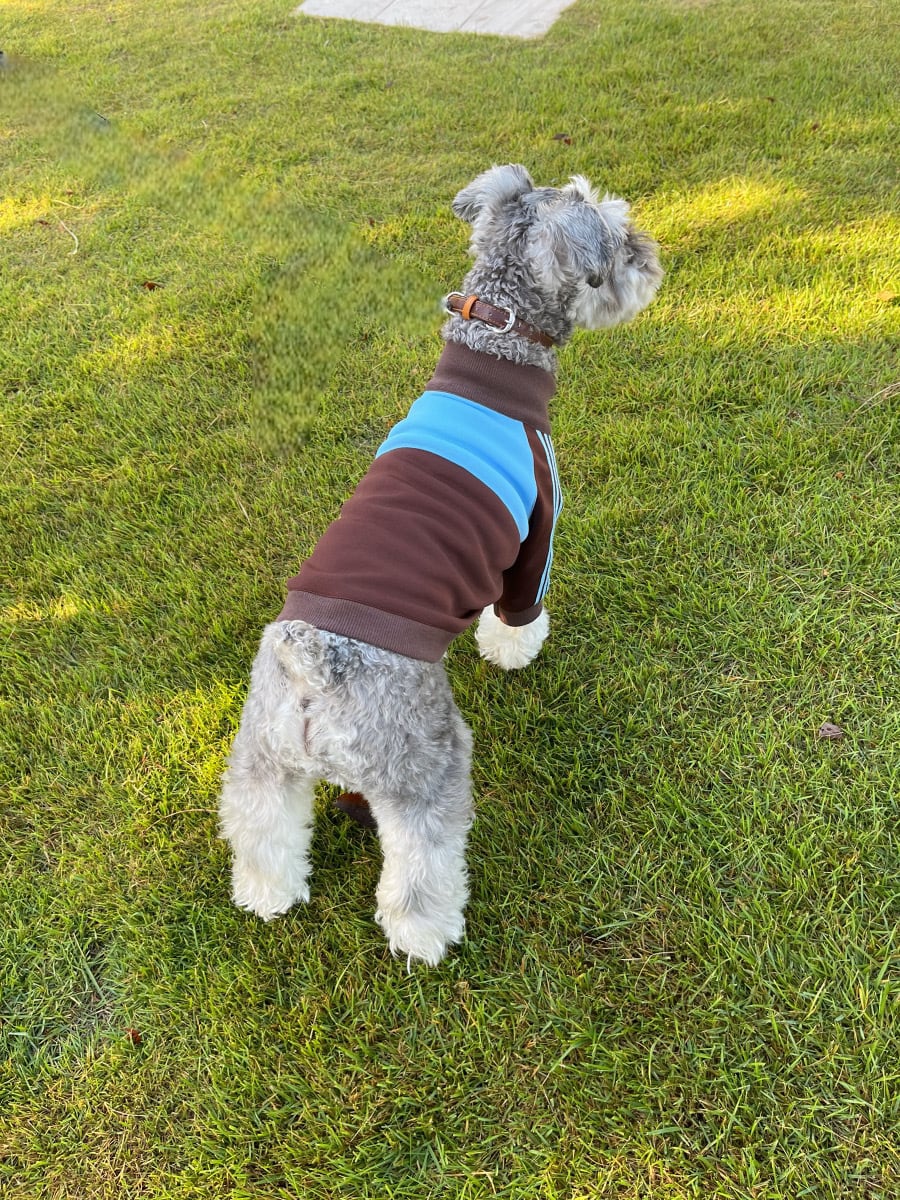 Chocolate Jersey 落ち着きの中に、ほんの少しの遊び心を。 「Chocolate Jersey」は、クラシックさとかわいさが心地よく溶け合った、 新定番です。 深みのあるチョコレートブラウンをベースに、 ブルーの切り替えと、袖にあしらった4本ラインがアクセント。 甘すぎず、渋すぎない。ちょうどいいバランス感を大切に仕上げました。 どこか懐かしさのある配色なのに、今っぽさも感じさせてくれる。 そんな“ちょうどよさ”を目指した一枚です。 前開きのファスナー仕様で、着脱もスムーズ。 毎日のお散歩はもちろん、ちょっと特別なお出かけにもぴったりです。 【送料】 12,000円以上のご購入で送料が無料となります。 【素材】 リブ部分:コットン100% ジャージ部分:ポリエステル100% 【生産】 縫製のプロが国内で一つ一つ手作りいたします。 Be Friends Againのお洋服は全てMade in Japanの高品質でお届けしております。 【納期について】 受注をいただいてからの制作となりますので、 約1~2週間ほどいただきます。 【モデル】 トルテ 犬種:ミニチュアシュナウザー 体重:9.5キロ 着用サイズ:XL 首周り:29cm 胴回り(一番太いところ):53cm 足の長さ:22cm 背丈:40cm 【お洋服のサイズ実寸】 XSサイズ 首回り:約27.5cm 着丈:約20cm 胴回り:約40cm 袖丈(脇下から袖口までの長さ):約7cm Sサイズ 首回り:約33cm 着丈:約21.5cm 胴回り:約46.5cm 袖丈(脇下から袖口までの長さ):約10.5cm Mサイズ 首回り:約38cm 着丈:約24.5cm 胴回り:約53cm 袖丈(脇下から袖口までの長さ):約12cm Lサイズ 首回り:約40cm 着丈:約29cm 胴回り:約57cm 袖丈(脇下から袖口までの長さ):約12cm XL 首回り:約42cm 着丈:約31cm 胴回り:約60cm 袖丈(脇下から袖口までの長さ):約12.5cm 足の短いワンちゃんの為に、 袖丈を調整することが可能です。 袖の調整が必要な場合は袖調整オプションをつけていただき、 カート備考で何cm袖を縮めるかご指定ください。 ※一つ一つ手作りをしている為、サイズには数ミリの誤差が生じる可能性がございます。あらかじめご了承くださいませ。 ※サイズにご不安のある方はご試着サービスをご利用くださいませ。