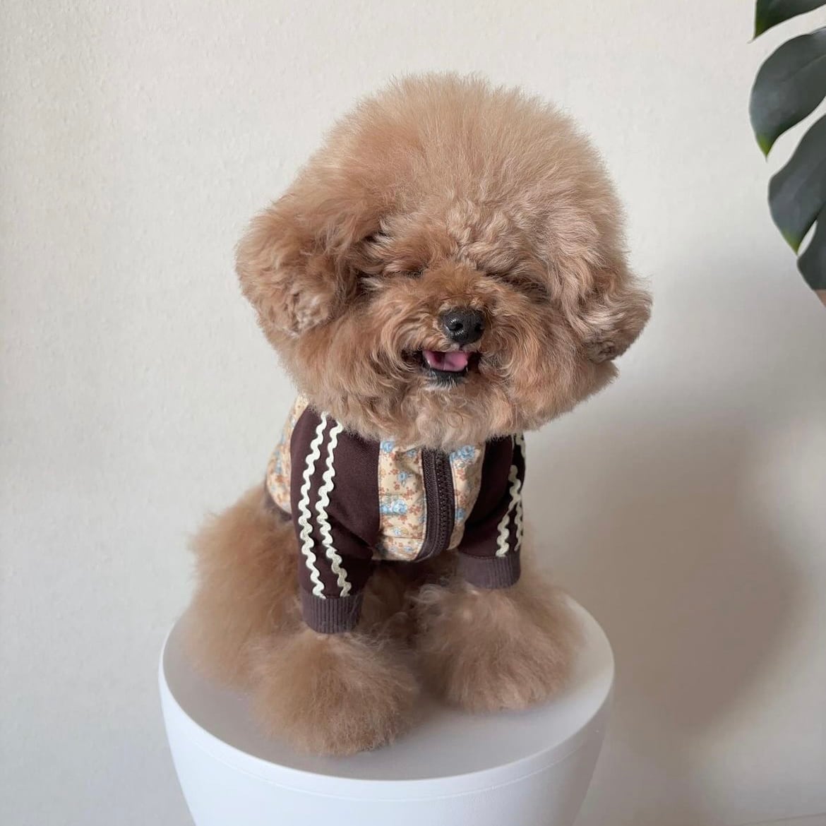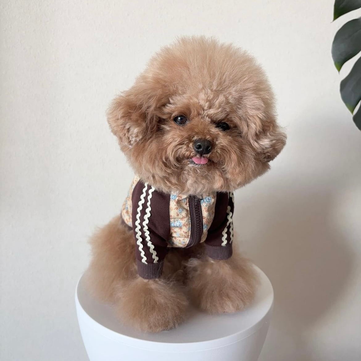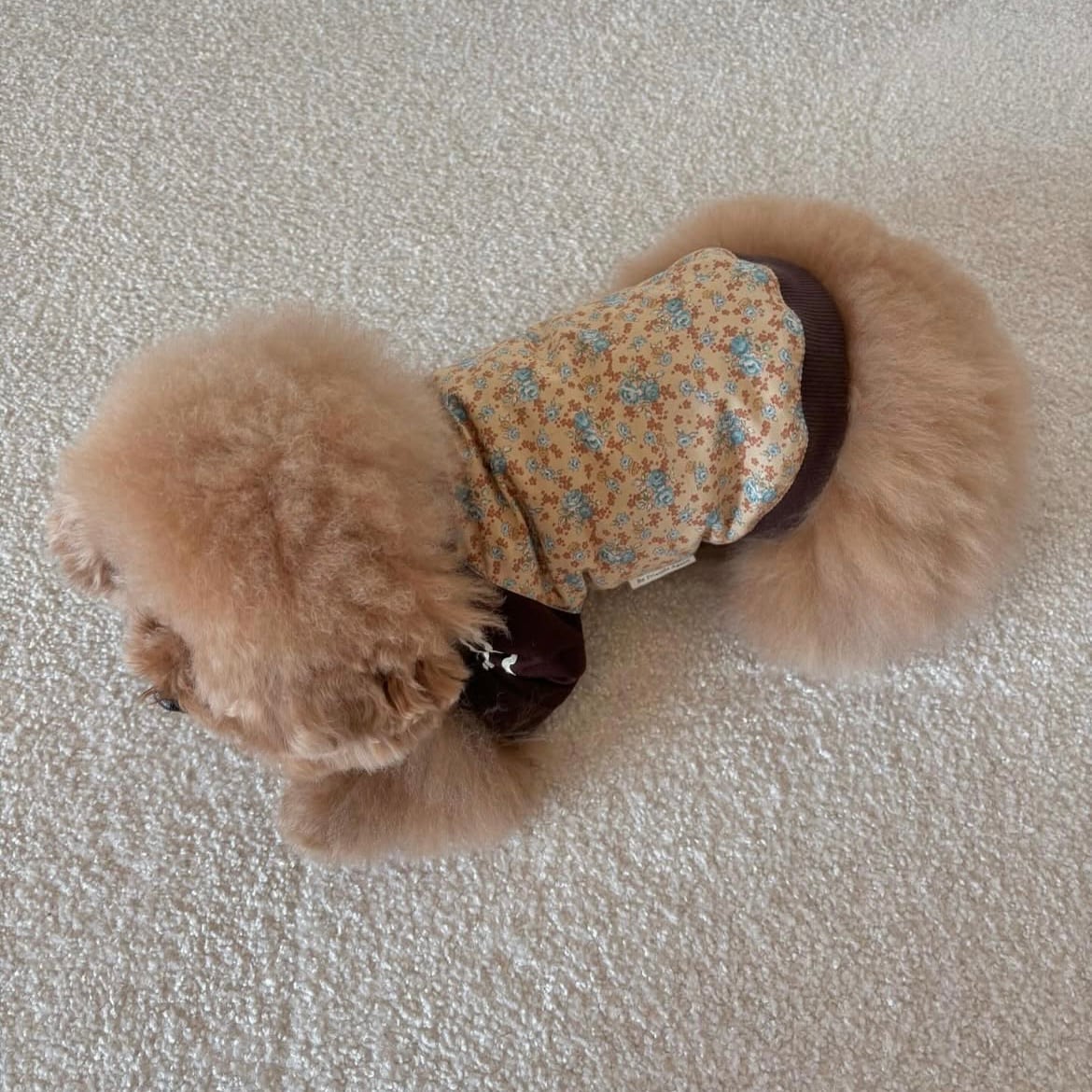 Be Friends Againから、 Flower Jerseyシリーズ第3弾「Honey Flower Jersey」が登場しました! かわいらしい花柄を主役に、 落ち着いた茶色のカラーを組み合わせた、 Be Friends Againにしかないデザインのジャージです。 袖のラインはユニセックスな雰囲気を加える為、 Pale Flower Jerseyと同じく 「うねうねライン」を使用し、ユニセックスな可愛らしさをさらにアップさせました。 ジャージシルエットで、 愛犬が自由に動き回れる快適さも魅力! ドッグランやアクティブなお出かけにもぴったりです。 前開きのファスナー仕様で、簡単に着脱ができますので、 お洋服が苦手なワンちゃんにもおすすめです。 華やかなデザインと、ワンちゃんに優しい快適さを兼ね備えたHoney Flower Jersey。 Be Friends Againのこだわりが詰まったこの新作をぜひお試しください! 【送料】 12,000円以上のご購入で送料が無料となります。 【素材】 ボディ、リブ部分:コットン100% ジャージ部分:ポリエステル100% 【生産】 縫製のプロが国内で一つ一つ手作りいたします。 Be Friends Againのお洋服は全てMade in Japanの高品質でお届けしております。 【納期について】 受注をいただいてからの制作となりますので、 約1~2週間ほどいただきます。 【モデル】 あんずちゃん 犬種:トイプードル 着用サイズ:XS あんずちゃんのお体のサイズ 体重:2.7キロ 首周り:24cm 胴回り(一番太いところ):37cm 足の長さ:12cm 背丈:25cm 【お洋服のサイズ実寸】 XSサイズ 首回り:約27.5cm 着丈:約20cm 胴回り:約40cm 袖丈(脇下から袖口までの長さ):約7cm Sサイズ 首回り:約33cm 着丈:約21.5cm 胴回り:約46.5cm 袖丈(脇下から袖口までの長さ):約10.5cm Mサイズ 首回り:約38cm 着丈:約24.5cm 胴回り:約53cm 袖丈(脇下から袖口までの長さ):約12cm Lサイズ 首回り:約40cm 着丈:約29cm 胴回り:約57cm 袖丈(脇下から袖口までの長さ):約12cm XL 首回り:約42cm 着丈:約31cm 胴回り:約60cm 袖丈(脇下から袖口までの長さ):約12.5cm 足の短いワンちゃんの為に、 袖丈を調整することが可能です。 袖の調整が必要な場合は袖調整オプションをつけていただき、 カート備考で何cm袖を縮めるかご指定ください。 ※一つ一つ手作りをしている為、サイズには数ミリの誤差が生じる可能性がございます。あらかじめご了承くださいませ。 ※サイズにご不安のある方はご試着サービスをご利用くださいませ。
